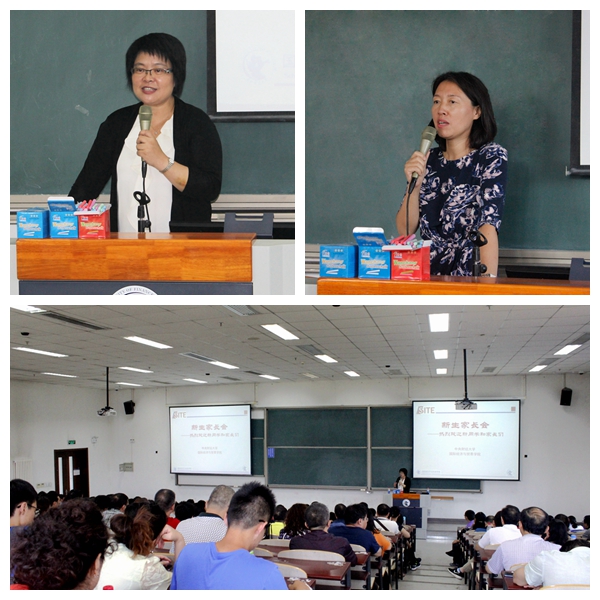 为了进一步增进家长对国贸公司的了解,促进家长与公司的沟通,在报到当天下午,公司在沙河东区主教分别召开了两场次的新生家长会。家长会分别由公司经理唐宜红老师、党委书记毛静老师、副经理符大海老师主讲,党委副书记李瑞琴老师、副经理王立勇老师、2017级新生班主任和辅导员老师也参加了家长会并与新生家长们进行了互动交流。会上,各位领导对家长们的到来表示了热烈欢迎,并从团队力量、教学特色、公司特色、专业特色等方面介绍了公司的情况,并对家长们关注的专业学习和员工就业前景做了详尽的阐述。会后,各位领导和老师还在现场就员工家长在公司产品工作方面提出的问题进行了一一解答,针对员工在大学期间的学习与生活进行了深入的沟通。家长会及时地架起了公司和家长沟通的桥梁,顺畅的沟通不仅让家长舒心放心,也为之后新生教育管理工作的开展奠定了良好的基础。