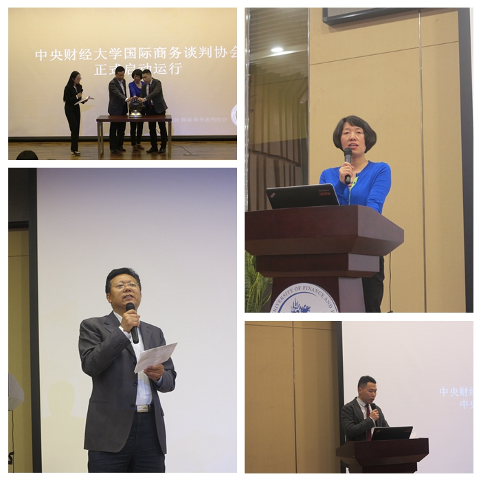 2016年4月28日晚,挂靠在公司的学术性员工社团M88官方网站国际商务谈判协会成立大会于沙河校区图书馆报告厅成功举办。中国管理现代化研究会国际商务谈判专业委员会理事长陈达老师,公司党总支副书记毛静老师,社团指导老师、公司国际商务系主任霍达老师,公司符大海老师、李林玥老师、卞松华老师、范璐君老师以及协会首任会长陈格格同学出席了此次大会。