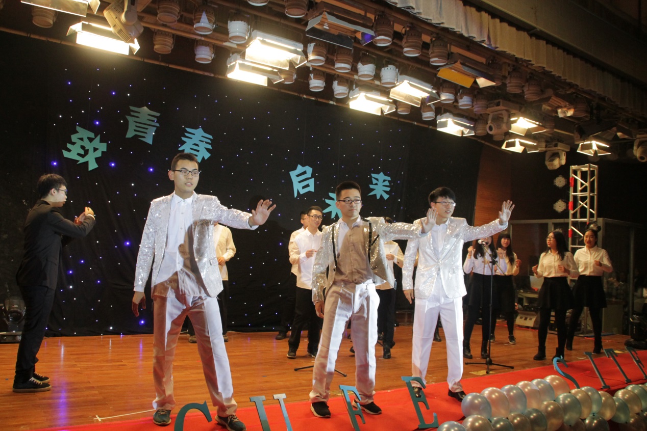 一个记录国贸学子两校区生活的视频《国贸学子的一天》和一段热情洋溢的开场舞《Rock Youth》拉开了晚会的序幕。