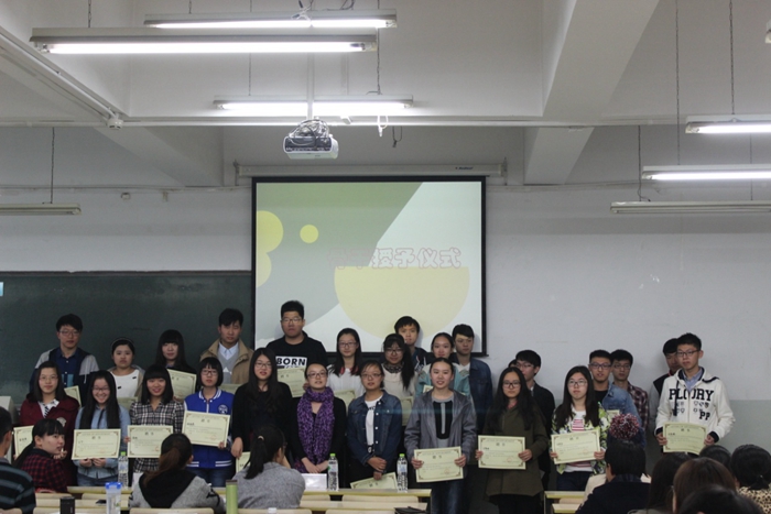 活动第一部分开始后,全场人员起立,共唱共青团团歌。紧接着,进入团支部骨干授予环节,伴着主持人清脆的宣读声和大家热烈的掌声,团总支书记范璐君老师和团总支副书记宋曦为2015届团支部骨干授予聘书。金灿灿的聘书,是每一位团支部骨干的荣耀,更是未来一年努力的动力。