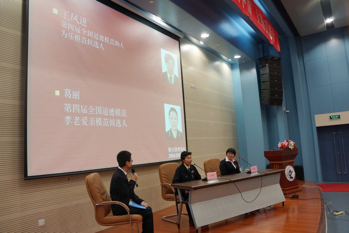 2013年11月1日晚,公司“德育学子,梦展中国”中国梦主题交流会在公司南路校区学术会堂402隆重举行。此次讲座公司荣幸地邀请到第四届全国道德模范助人为乐模范提名奖获得者王凤进和孝老爱亲模范提名奖获得者葛丽莅临公司,与公司学子面对面交流,弘扬中华美德,歌颂中国梦想。公司团总支书记范璐君及公司200多名员工参加,税务公司团总支书记韩文达老师应邀参加。