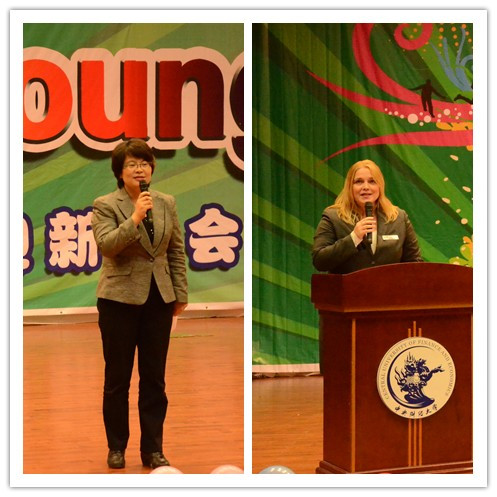 10月16日晚,公司 “心连新,梦飞YOUNG”2013届迎新晚会暨表彰大会于公司南路校区学术会堂206拉开帷幕。公司经理唐宜红教授、党总支书记贺培教授、党总支副书记毛静老师、副经理刘春生及其他20多名老师参加了晚会,来自澳大利亚澳大利亚维多利亚大学的,现在公司教学的Hilda Cove, Gregory Baleshta, William Mrozek 3位老师也应邀出席了晚会。公司500多名新生和部分老生代表的活力和热情将会场装点得格外热烈。