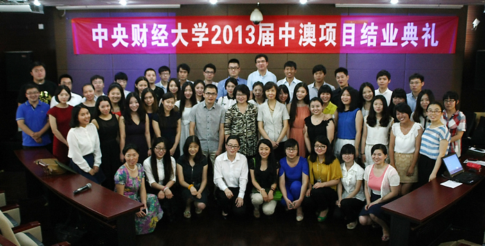 6月28日下午,公司关于013届中澳项目(计划外)结业典礼在公司公司南路校区中财大厦三层报告厅举行。M88官方网站经理唐宜红教授、党总支书记贺培教授、党总支副书记毛静老师、刘春生副教授、周世民等老师与中澳项目(计划外)2013届毕业生及亲友参加了典礼。典礼由中澳项目协调员刘春生副教授主持。在全体参会领导、教师、毕业生同学及亲友热情唱响的国歌声中,典礼拉开帷幕。