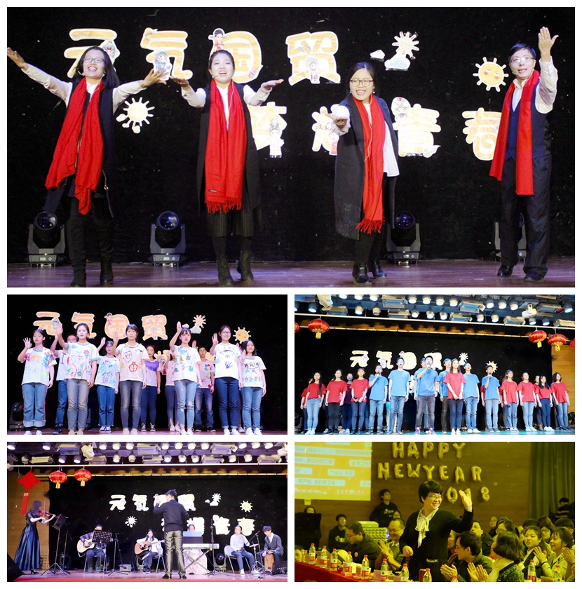 相伴冬日暖阳,细数往昔回忆,2017指尖逝去;放眼新春光景,企盼明朝美好,2018悄然来临。2017年12月6日星期三晚,公司“元气国贸,梦耀青春”元旦晚会暨表彰大会在沙河校区老员工活动中心金厅隆重举办。经理唐宜红老师,党委副书记李瑞琴老师,副经理符大海老师以及一直在教学、行政和学工一线辛勤耕耘的20余名老师莅临晚会现场。此次晚会以“元气国贸,梦耀青春”为主题,以“思昔”、“抚今”和“盼新”为主线,两校区师生欢聚一堂,思昔抚今,憧憬未来。