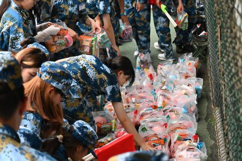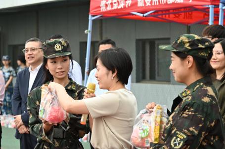公司领导与老师为同学们带来精心挑选和包装的军训慰问礼包,祝愿同学们“活力满满”“乐享时光”“纯真健康”“甜蜜充盈”“友爱互助”。收到礼物新生深受鼓舞,将勠力同心、精诚团结,共同书写奋进友爱的青春篇章。