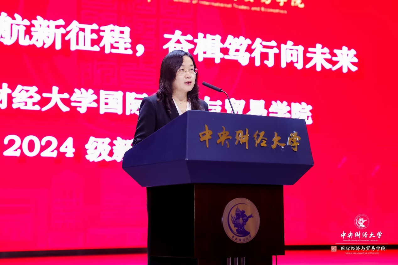 徐淼书记对408名国贸新生的到来致以诚挚的问候和衷心的祝贺。徐书记指出,“为国而生,与国同行”是中财大的红色底蕴和使命,并对新一届国贸学子寄予“青年力行,财经报国”的厚望。她将新生们比做《黑神话:悟空》中的孙悟空,将国贸公司比作与各位“天命人”并肩前行的角色,她希望新生们能够在这个充满挑战与机遇的时代,创造独属自己的“黑神话”,并送给新生三条“灵根”:一是要主动学习,捕捉自己的“人生方向”。大学充满自由选择与自发探索,需要同学们完成从“要我学”向“我要学”的转变;大学里还需要更加丰富多元学习,同学们需完成从“单领域”到“跨学科”的转变;大学里也需要更具问题导向地学习,同学们应尽力完成从“研究什么”向“解决什么”的转变。二是去思考,遇见“真·灵山”。唯有善于思考,透视本质,方能博学慎思,兼听则明,打破信息茧房,应对时代挑战。三是知行合一,敢于实践。新一代的财经人需要勇于尝试和探索,在实践中锤炼真才干,拓展新认知,研究真问题,终能修成正果。最后,她勉励同学们立足新时代,展示新作为,展现青春的奋斗底色。