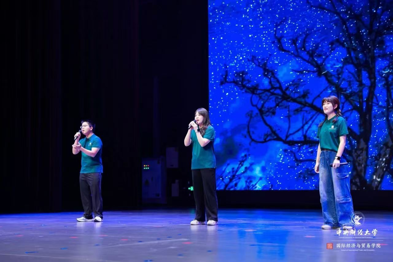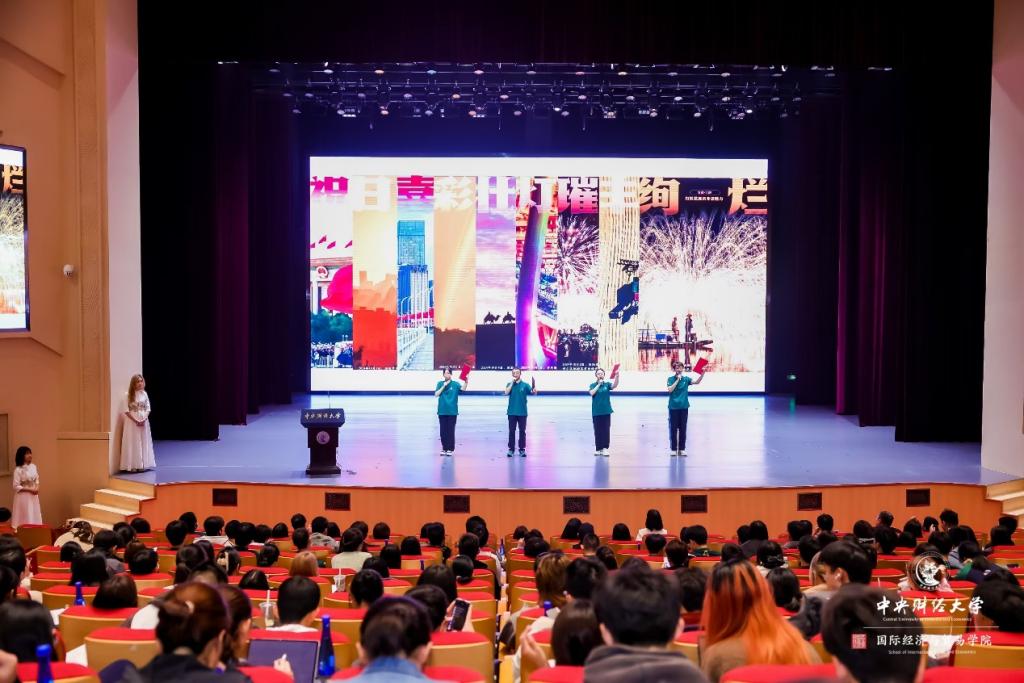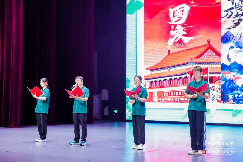 2024级新生带来主题为《喜迎75年华诞,开启国贸新征程》的朗诵表演将典礼推向高潮。经贸24-1班李佳航、郭依宸、中澳24-1班陈青郁、中澳24-1班王文浩代表全体新生带来深情朗诵,铿锵有力,激情飞扬。他们用青春强音展现了全体新生积极向上,勇往直前,朝气蓬勃的精神面貌,谱写出国贸学子不负少年意气,不泯时代信念的赤诚赞歌。同学们将以此为起点,踔厉奋发,笃行不怠,书写属于国贸人的青春篇章。