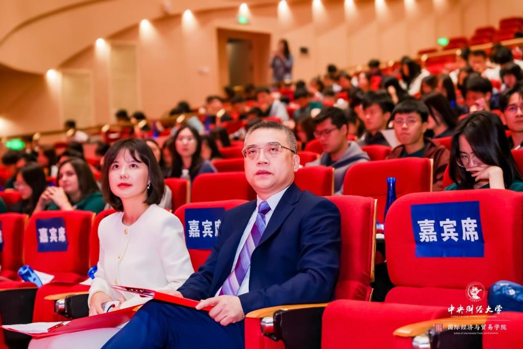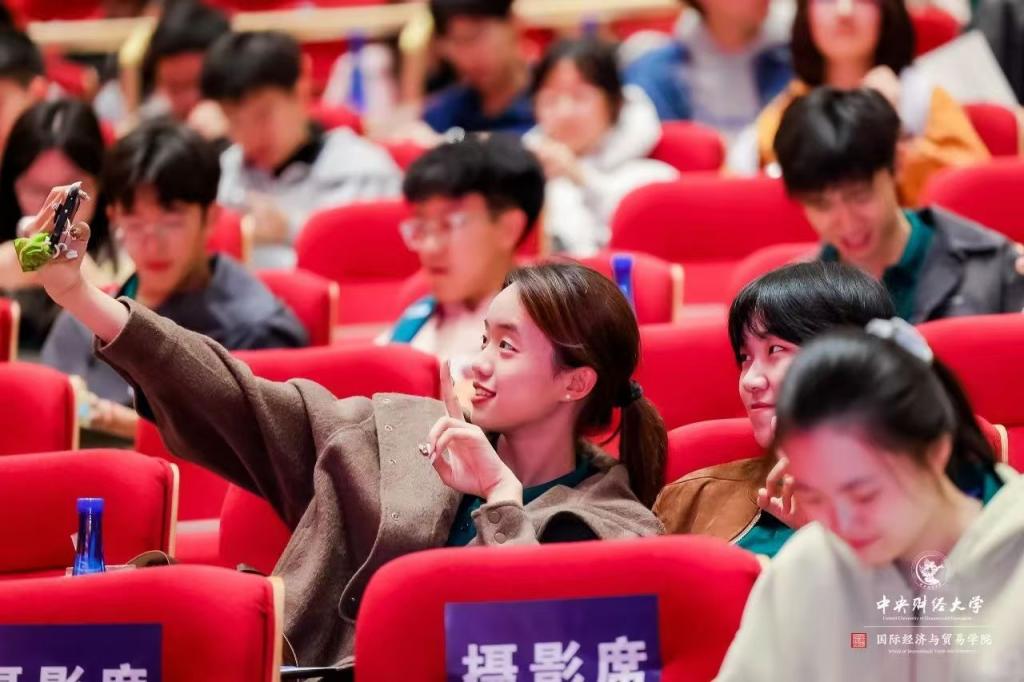 刘韬副教授从“怎样才是真正地开启老员工活”切入,跟同学们进行了分享。刘教授认为,大学专业知识的学习与现实经济世界关联紧密,他深入浅出地讲解了新格局新背景下如何发挥国贸人的专业优势。刘教授提到,同学们要善于从生活中发现经济学问题,他以最近大火的游戏《黑神话:悟空》以及新能源汽车国际贸易为例,谈到在数字经济时代,产品、服务、数据的跨境流通面临着多变复杂的形势,也正是这种机遇与挑战并存的时局下,才更加凸显出国经贸专业人才的重要性。同学们生逢其时,应挺膺担当,在专业学习的海洋中勤奋笃行,为在全球事务中发出中国声音、传播中国声音积极作为,心怀理想,胸怀天下,迈步走向更广阔的天地。