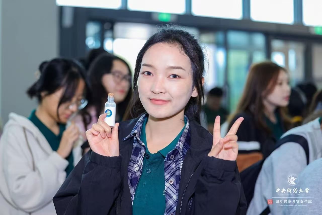 余周婧淳同学回忆了赴藏支教的经历,不怕吃苦,传播知识,传递希望。这段独特的体验与她的求学经历,使得她对于“财经报国”这一理念的理解更加深刻。她认为,新时代的财经学子,不仅要具备“能识乾坤大”的广阔视野,更要怀揣“肯怜草木青”的细腻情怀,以专业知识为基石,以国际交流为航标,以爱国情怀为动力,共同书写新一代中财国贸人的壮丽篇章。