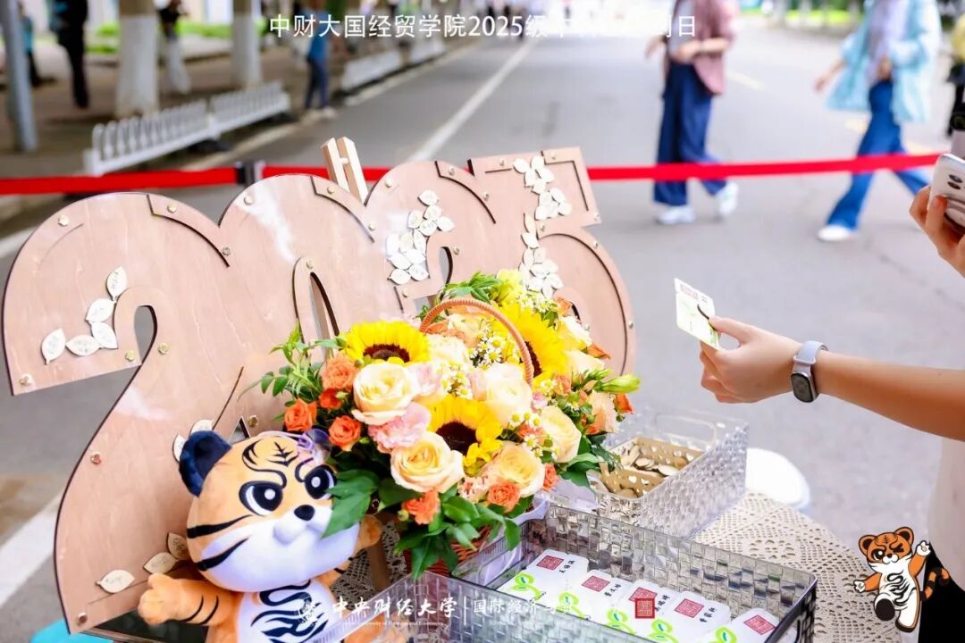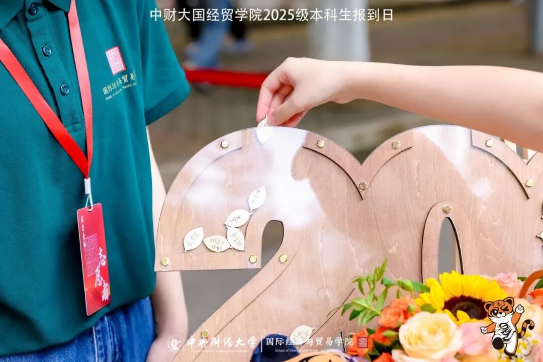 此次迎新,公司特意为新生同学们准备了迎新纪念礼物。志愿者们赠予新生印有国贸公司吉祥物贸贸虎的帆布袋、精致的公司徽章、玲珑的贸贸虎钥匙扣、公司特别编制的《茂才易学,四季耕读:M88官方网站本科生分年级发展指南》,以及印有新生名字的“种子门票”。“种子门票”放入泥土中可抽芽生枝,预示着梦想的种子将在国贸公司的沃土中生根发芽。新生将带着美好的祝愿,踏上大学之旅。此外,新生们在木刻叶片上签名,投入形为“2025”的透明容器。国贸公司似一棵大树,新生是一片片叶,从大树中获得养分,也为大树装点容貌。