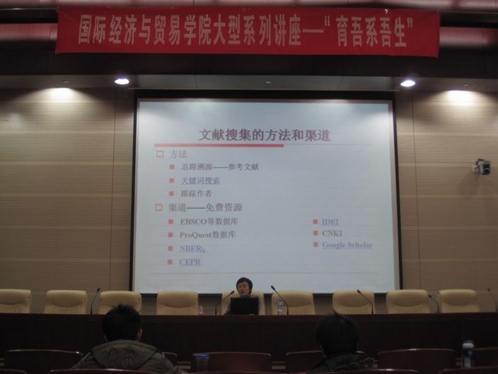 首先,李瑞琴老师从本科生毕业论文的重要性、员工在发表论文时遇到的问题和误区出发,强调了学术论文写作与研究在老员工学习中的重要性以及论文写作训练的重要意义。随后,李老师详尽的讲解了学术论文写作过程的各个方面,关于论文的选题,李老师建议同学们遵循专业、价值、适众和兴趣四原则进行广泛阅读,了解前沿,并给同学们推荐了综述性论文的网站和查找方法,解决了大家寻找资料无从下手的难题;李老师还结合例子给同学们讲解了选题的大小难易掌握问题,给同学们写学术论文的选题环节指明了方向。接下来,李老师给同学们介绍了大量的数据库和文献搜集的三种方法来讲解关于文献搜集及整理的问题。正文写作方面,李老师给出了提出问题、分析问题、解决问题的大框架思路,并细致地讲解了正文写作中应该注意的各个方面并结合许多本科生在毕业论文中所犯的错误给大家提出了建议。最后,李老师在论文修改方面给大家列举了一些注意事项。
