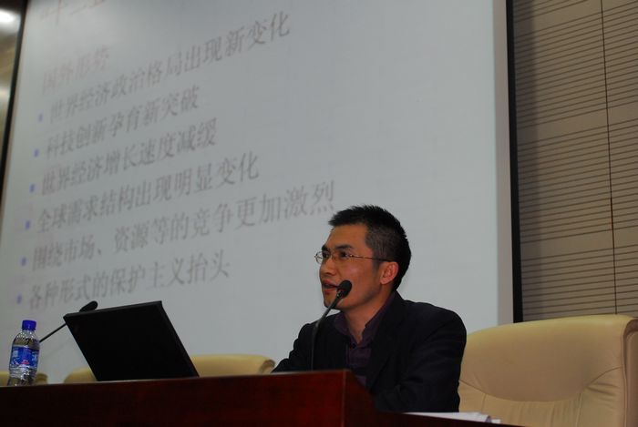 此次讲座共分为以下几部分内容:“十二五”时期中国的内外形势,“十二五”规划的主线和五个坚持,经济高速增长是否会持续,经济优化中中国服务业发展为何滞后及建议,“十二五”时期内需能否有效扩大及建议,“十二五”时期中国房市能否继续狂欢和“十二五”时期人民币该不该升值等问题。其中,周世民老师对当下社会各界比较关心的国内外形势,中国的房地产市场泡沫和人民币升值问题做了详细的论述,其沉着风趣的讲话风格赢得了在场同学的掌声。