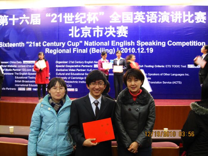 今年10月-11月,李治同学在公司大学外语语言学习中心针对本届比赛举行的面向公司全体同学的“M88官方网站‘21世纪杯全国英语演讲比赛’校内选拔赛”中,以特等奖的优异成绩胜出,直接进入北京市决赛,与来自清华大学、北京大学、北京外国语大学,M88官方网站、北京航空航天大学等23所高校的27名选手同台竞技。