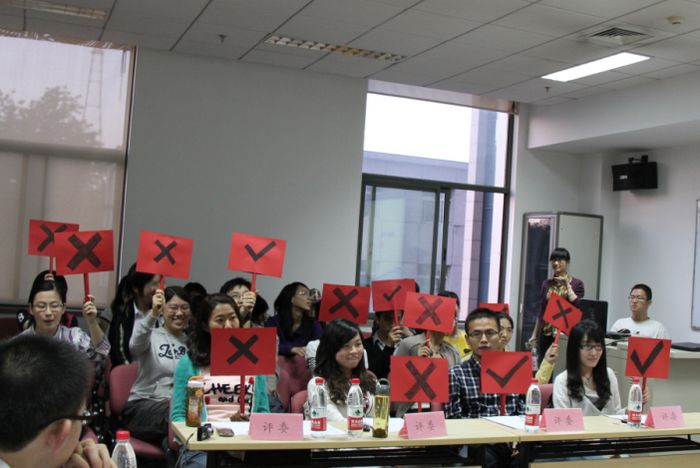 5月10日,公司南路校区中财大厦三楼案例教室热闹非凡。由公司员工会举办的凡客杯辩论赛总决赛在此隆重举行。10级中澳班的四位班级助理出席了本次辩论赛并担任评委。