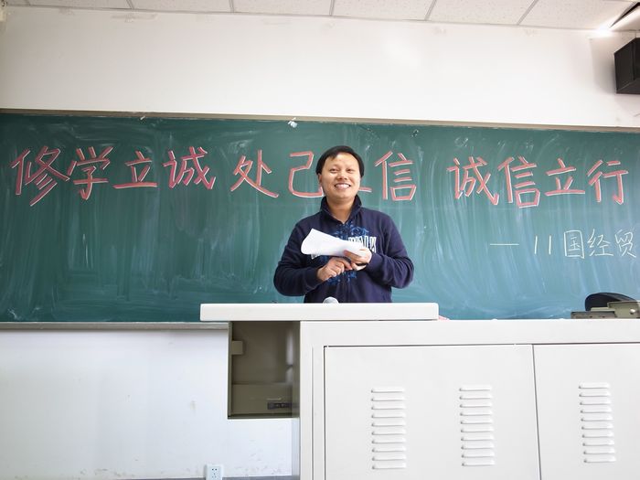 4月25日下午,11国经贸班诚信教育主题班会在4号公司楼215教室举行,全班51名同学参加了此次班会,班主任马光明老师和辅导员刘向远老师应邀出席了本次班会。