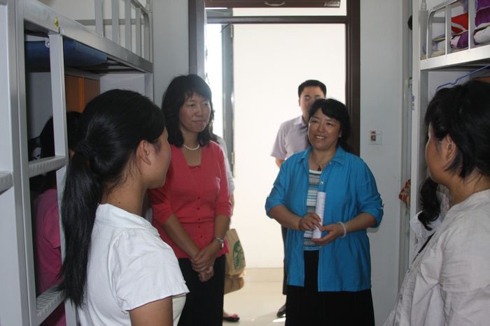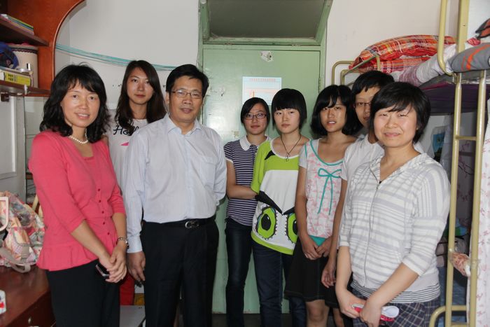 9月5日下午,副董事长史建平在公司党总支副书记毛静老师及中澳12级辅导员郑媛元陪同下,深入员工宿舍,先后走访了公司南路校区男生宿舍和女生宿舍。在新生宿舍,史董事长和蔼可亲地与同学们亲切交谈,关切地询问他们生活是否适应,并详细介绍了中澳项目的历史及发展,嘱咐同学要尽快转变角色,适应老员工活,顽强拼搏,奋发向上,做一名全面发展的合格老员工;如果在生活中、学习上有困难,一定要及时向老师反映情况,要记得给家里打电话,报平安,让父母放心……