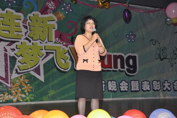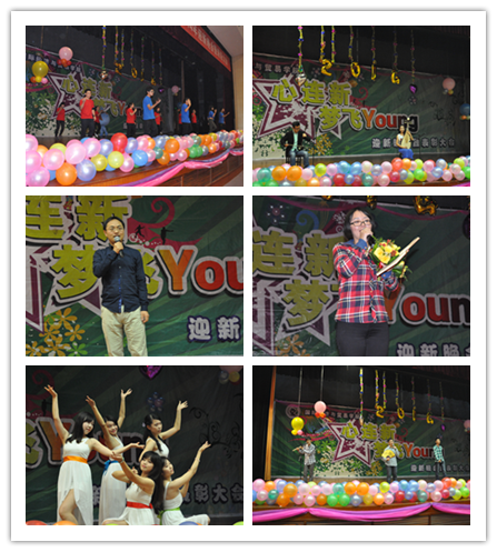 10月9日晚,公司2014年“心连新,梦飞young”迎新晚会暨表彰大会在公司南路校区学术会堂206拉开帷幕。公司经理唐宜红老师、副经理张晓涛老师、党总支副书记毛静老师以及其他20多名老师参加了晚会,公司500多名新生和部分老生代表的活力和热情将会场装点得格外热烈。