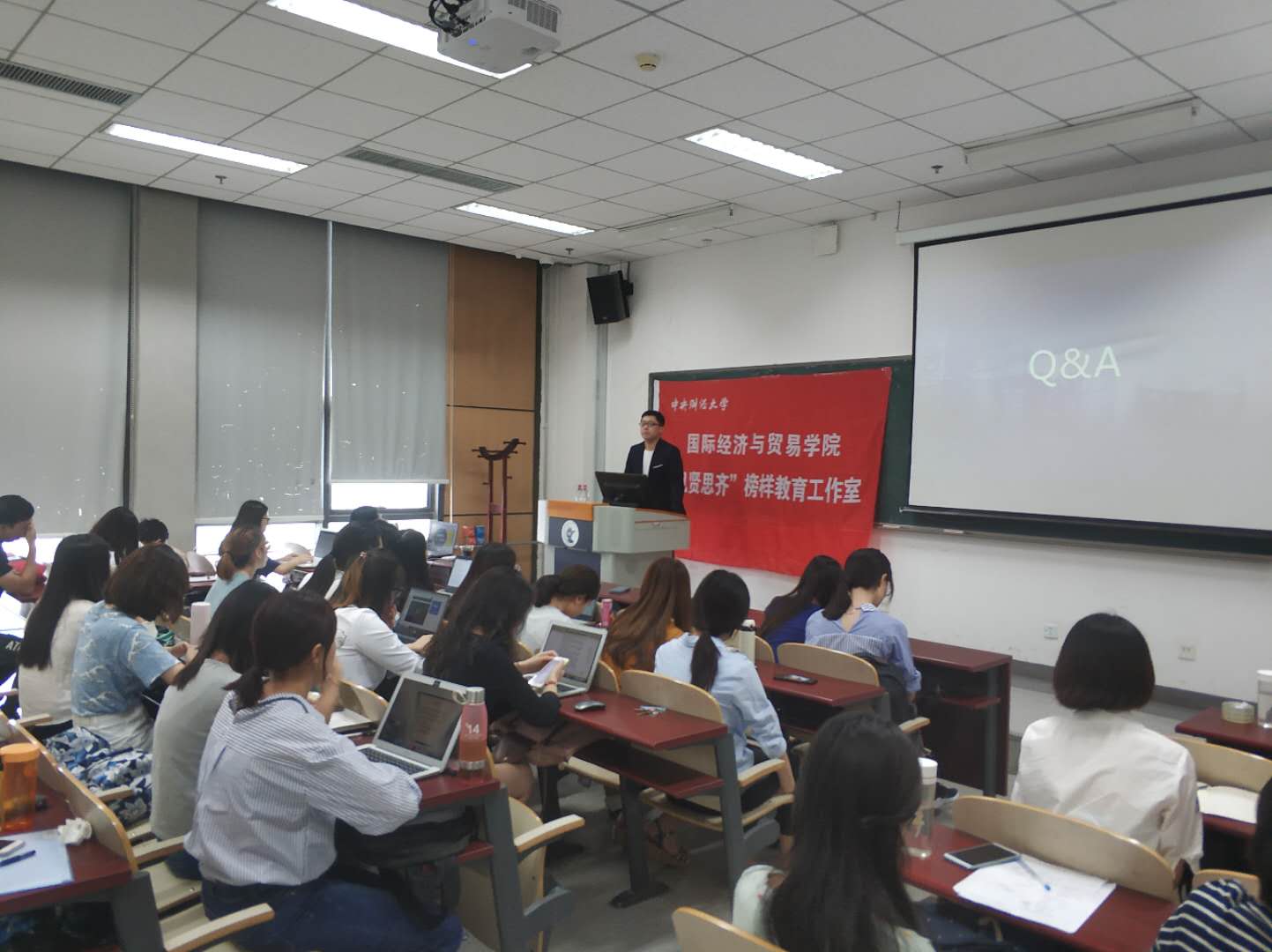 2018年09月14日下午14点,M88官方网站“见贤思齐”榜样教育工作室非常荣幸邀请到了华为财经北京区域招聘负责人王洪亮经理为国贸学子举行专场就业讲座,并与国贸学子进行了深度的交流和座谈,讲座由2015级毕业班辅导员老师邱小花主持。