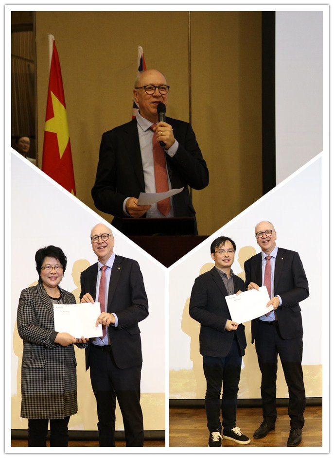 接着,维多利亚大学董事长彼得·道金斯发表了热情洋溢的致辞。他指出中澳合作办学的成功离不开双方的密切配合和师生的共同努力,项目的持续运行将在团结的氛围下不断完善。中外项目的国际属性要求员工更加严格要求自我,在专业学习和能力提升上努力进取;以团队合作意识、批判性解决问题的能力寻求最佳路径。大学是由挑战组合而成的,主动学习,自主汲取知识,善于思考,才是追求的本质。之后,彼得·道金斯还为上一届中澳项目的领导团队签授了感谢信,衷心感谢他们为中澳项目作出的贡献和付出。