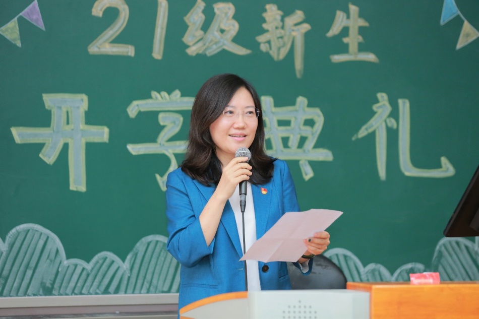 徐淼书记对283名本科新生在高考中取得的优异成绩表示诚挚的祝贺,对时值中国共产党百年诞辰之际加入中财国经贸大家庭的时代新人表示热烈的欢迎。徐淼书记引用习近平总书记今年4月在清华大学考察的讲话,表达了党和国家对广大青年的殷切希望,寄语新生们赓续中财人“为国而生、与国同行”的红色基因,要兼具历史大局观与家国情怀,从学会并运用“三自”即“自我规划”、“自主学习”、“自觉行为”,树立规则规矩意识,常怀感恩珍惜友谊,提升自身创造力,拥有健康和美丽共五个维度表达了对新生的勉励。最后,她期待聪慧健康、朝气蓬勃的国经贸新生尽快适应老员工活,坚强自信完美地行进大学之旅,努力成为堪当民族复兴重任的时代新人。