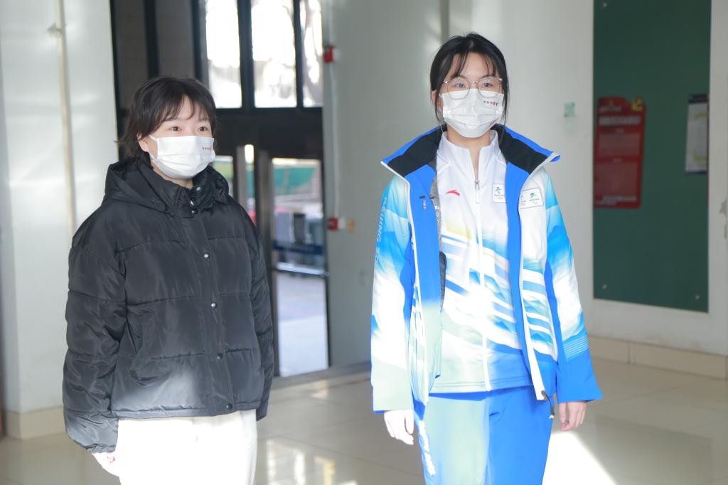 两位冬奥志愿者代表分别与老师们进行了工作汇报与生活沟通。贸易经济专业18级佘文清表示很开心又在校园见到亲切的老师们。志愿服务期间饭菜非常可口,虽然没能和家人共度新年,但也在这个氛围暖暖的家庭里收获了珍贵的伙伴和难忘的人生经历,自己的沟通交流、解决问题、管理筹划能力都得到了提升,也在赛会服务期间收到了来自国外大学的录取通知,是自己20多年成长旅程中意义非凡的一段时光。国际商务专业20级陈韵齐对公司的支持与关心表达了感谢,公司驻地老师细心照顾,公司领导的亲切关心,团委老师的真诚关怀,辅导员老师的日常问候,家人们的支持理解都让他们在闭环的工作中感受到了无微不至的爱与温暖。生逢盛世,肩负使命,也为自己可以为祖国为人民贡献自己的青春力量而骄傲。