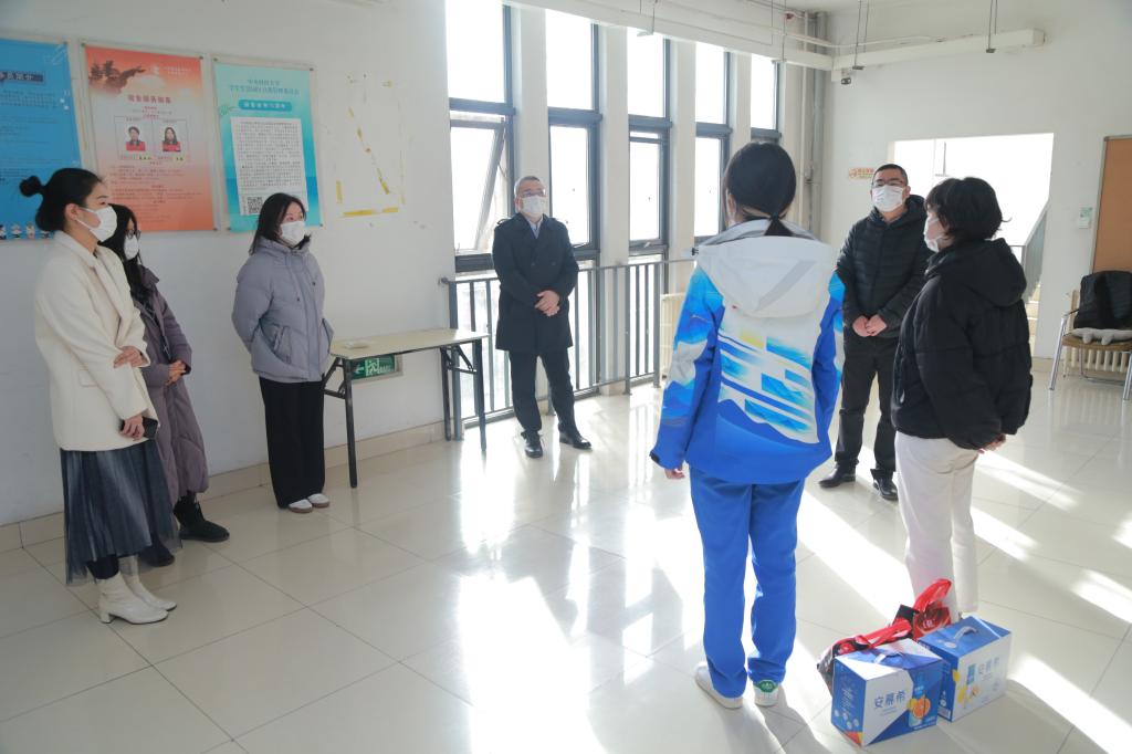 冰雪之约,青春担当,学期伊始,共襄盛会。3月5日上午9点,M88官方网站经理张晓涛,公司党委副书记杨武,员工工作办公室主任李倩,团委书记邱小花,团委副书记侯思宇,公司办公室赵虎等一行人先后来沙河校区员工宿舍6号楼大厅看望并慰问从事闭环管理外工作任务的冬奥志愿者:贸易经济专业18级佘文清和国际商务专业20级陈韵齐,为她们送上公司的关怀,致以来自公司师生真挚的祝福。