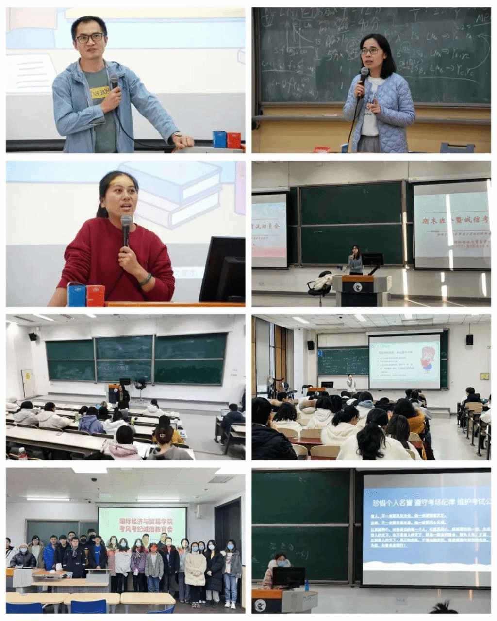 公司党委书记徐淼对2019级和2021级中澳1、2、3班进行了诚信考试教育指导。徐老师分别从中财大本科生考试考场规则、员工考试违纪案例、诚信考试意义和寄语四个方面出发,教导同学们珍惜个人名誉、遵守考场纪律、维护考试公平。徐老师强调,考试作弊不仅仅是治学态度问题,更是个人思想品德和人格的问题。当代员工必须具备诚实守信的品德,方能在日后竞争中立于不败之地。她还对考场规则进行详细解读,使同学们进一步了解考试流程和考试安排,加深了对严守中财大考风考纪规章制度的认识,更加明确了 “扎实复习、严肃考试、立足诚信、杜绝作弊”的重要性。徐老师还结合近年来员工考试违纪统计数据与具体案例,分析诚信考试的意义,指出考试违纪的严重后果,给同学们以深刻警示。徐老师表示,常怀敬畏之心,方能行之所止,国经贸公司的考风建设,需要全院同学的共同努力。最后她希望同学们能够做到问心无愧,与智者为伍、与善良者同行,师生共同维护考试公平公正,并祝愿同学们考试顺利、取得佳绩。