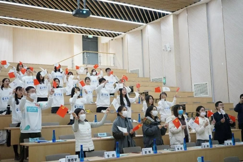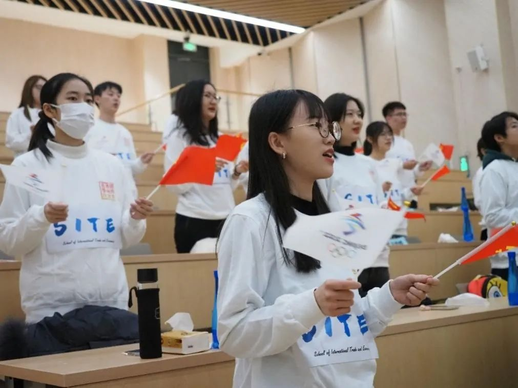 授旗过程中,全体师生共同唱响冬奥会主题歌曲《一起向未来》。青春活泼的旋律点燃冰雪激情,期待志愿者们在各自的岗位燃动青春力量,不负重托,不负所望。