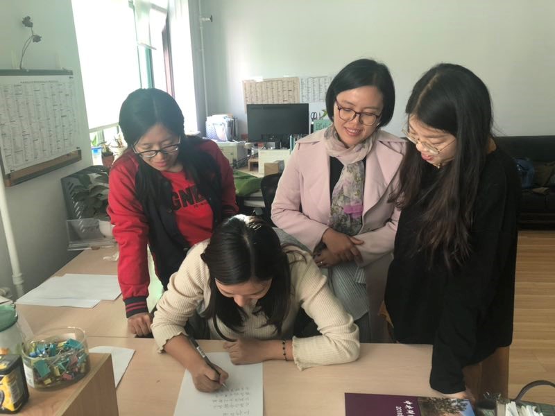 硬笔书法比赛要求老师们在3分钟内用黑色水笔当场写下古诗一首(望庐山瀑布),并在纸背面写上名字,将所有参赛作品正面复印,并交给由公司研究生组成的员工进行匿名打分,选出获奖者。经过比赛,周世民、孙瑾与秦伊伦老师获得一等奖,另有7位老师获得优秀奖。通过比赛,提升了教工学习书法的热情,对提升员工作业批改以及板书水平均起到了积极作用,老师们也见识到了身边老师优秀的书法作品。