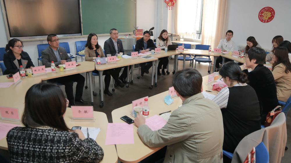 张晓涛经理对员工总会来访表达了感谢,他回顾了国际经济与贸易的学科发展历史,汇报了公司多层次、宽领域、跨部门的员工分布情况,表示未来会把员工工作与公司建设和学科发展融合,充分利用员工资源,凝聚力量,产生协同。张经理还介绍了公司班子分工调整后员工工作和基金工作的计划,包括组织换届、基金筹措、物品捐赠、校企交流等。