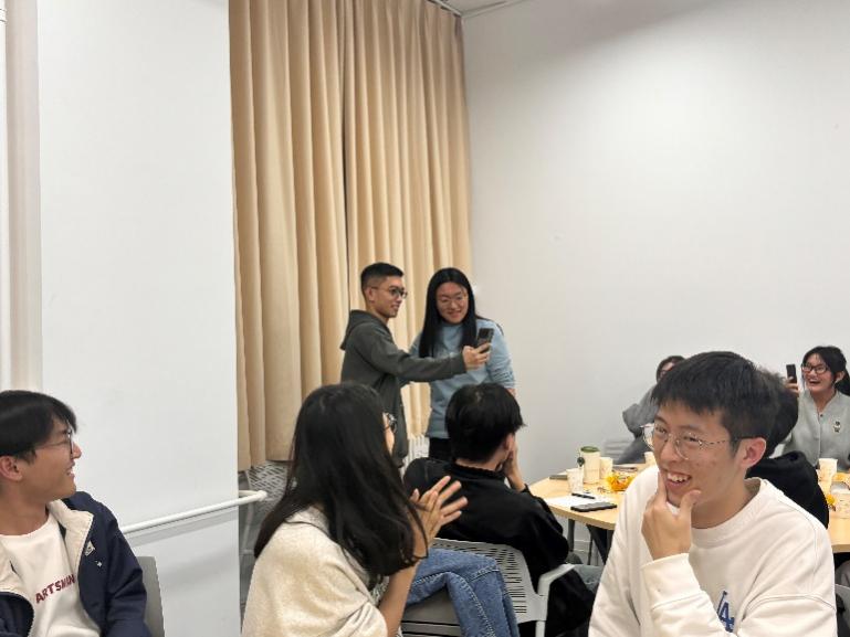 接着,各小组在组内进行“我有你没有”小游戏,同学们依次分享自己独特的经历,不仅让大家惊叹连连,也增进了彼此的深入了解。几轮游戏过后,同学们兴致高涨,自发开始玩起了各种新游戏——“逢七过”、“报数识人”、“谁是‘卧底’”。不断有同学在游戏的小惩罚下当众发言、唱歌、跳舞,把团建活动推向了高潮。这种通过游戏和互动来增进了解的方式,不仅能够让大家在轻松愉快的氛围中放松身心,还能促进同学之间的友谊和团队协作能力。