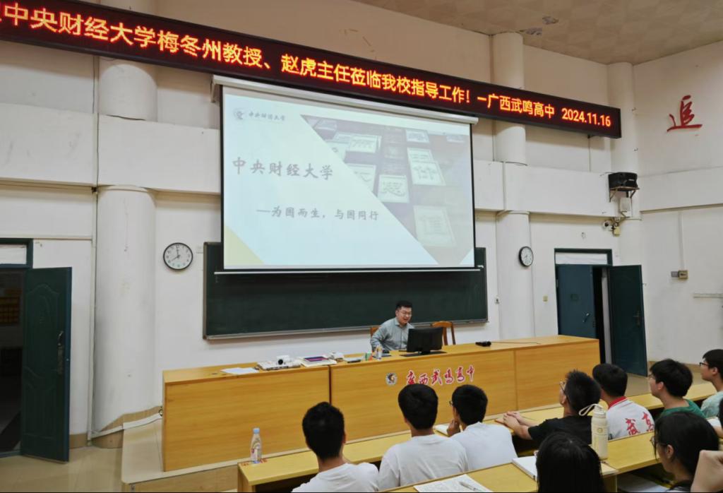 11月16日-18日,招生宣传组赴广西武鸣高中、百色高级中学开展招生宣讲活动。在两校的宣讲中,梅冬州教授做了题为《从国家发展看个人成长》的主题讲座,他在讲座中指出,党的二十大报告引领我们实现第二个百年奋斗目标,以中国式现代化全面推进中华民族伟大复兴。他通过对比阿根廷、韩国等国家的基本情况,揭示要顺利实现由中等收入跨步到发达经济体,需要预防金融危机的爆发,降低地区差距实现共同富裕,并由此引出对同学们在个人成长过程中的建议,鼓舞同学们满怀信心、补齐短板、脚踏实地地前进。梅教授从部分经济学基本概念与原理出发,带领两所高中的同学们从宏观经济走向农村教育,由国家发展反思个人规划,获得同学们的热烈反响。