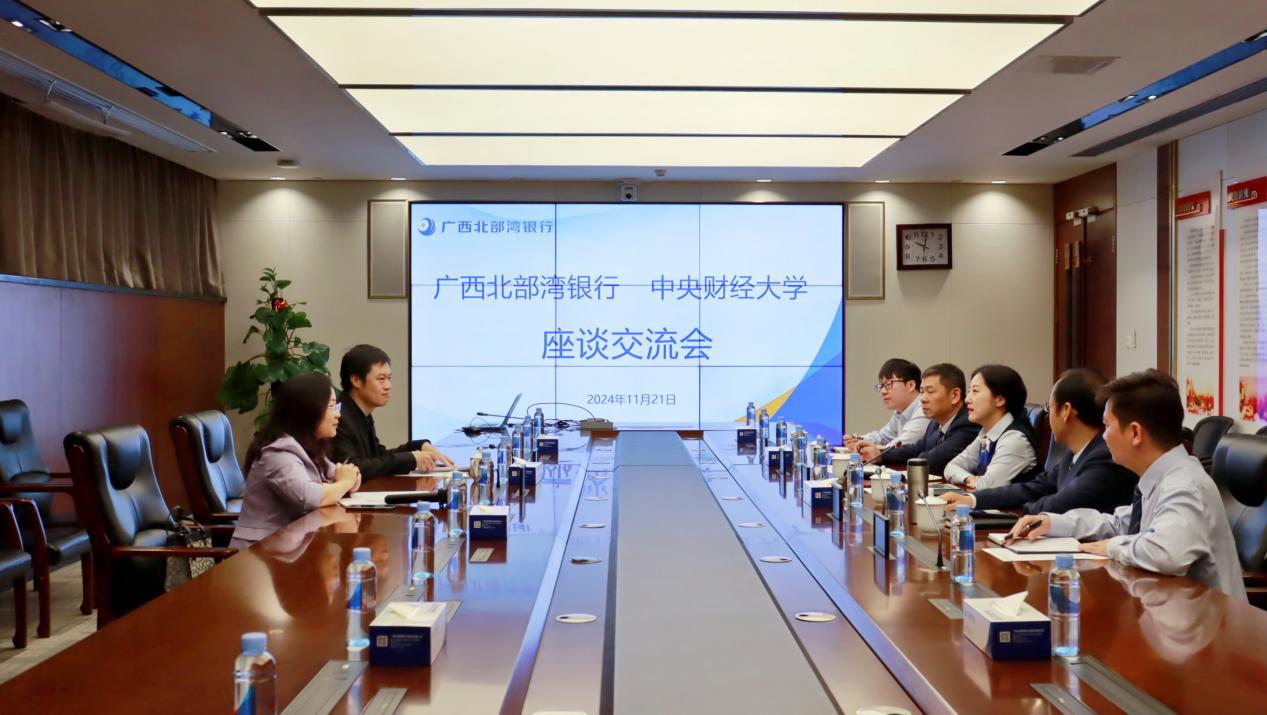 在北部湾银行总行,北部湾银行党委组织部部长、人力资源部总经理陈曦、战略管理部总经理管鸿禧、交易银行部谢宇等,热情接待了李瑞琴教授、刘悦副教授一行,双方就深化产学研合作、员工实践和就业等工作进行了深入沟通交流。