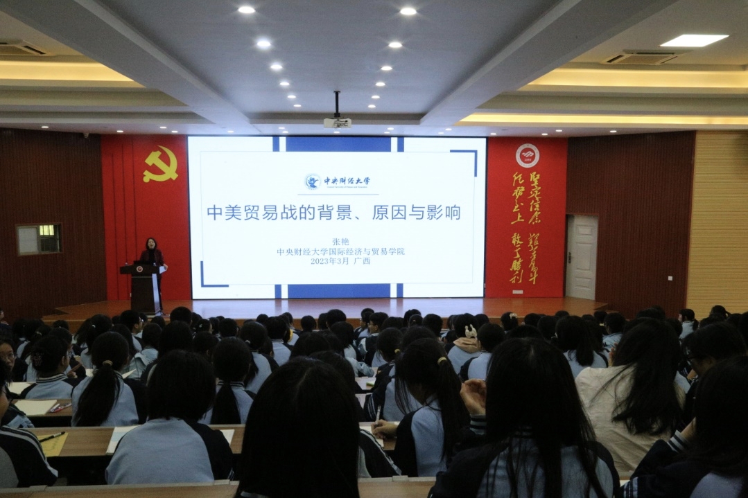 3月30日下午,老师们赴南宁三中(五象校区)开展招生宣传工作。五象校区副董事长莫怡祥、教务处主任于法锋等老师出席了本次活动。首先,双方就如何加强招生宣传实效、吸引优质生源报考M88官方网站进行了充分的沟通,随后双方代表签署了《M88官方网站优质生源基地建设协议书》,并举行了优质生源基地挂牌仪式。在之后的“龙马讲堂进校园”的活动中,张艳教授做了题为《中美贸易战的背景、原因和影响》的学术讲座,员工们现场互动频繁,气氛热烈。