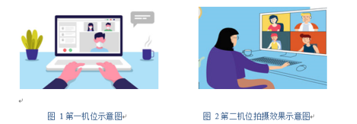 第一机位(建议电脑端)从正面拍摄,放置在距离本人30cm处;第二机位(建议手机端)从考生侧后方45°距离本人30cm处拍摄,确保第一机位和第二机位分别从考生面前和身后完整拍摄到考生上半身、复试组教师能够从第二机位清晰看到第一机位屏幕。