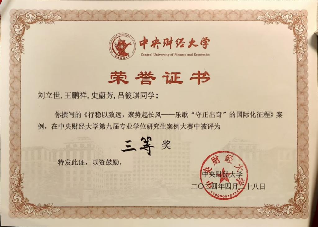 师生团队第三届国际商务专业学位研究生案例竞赛获奖证书