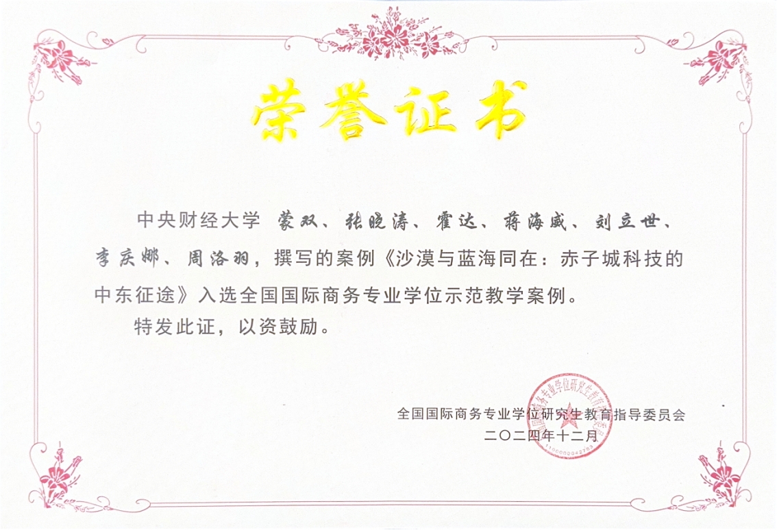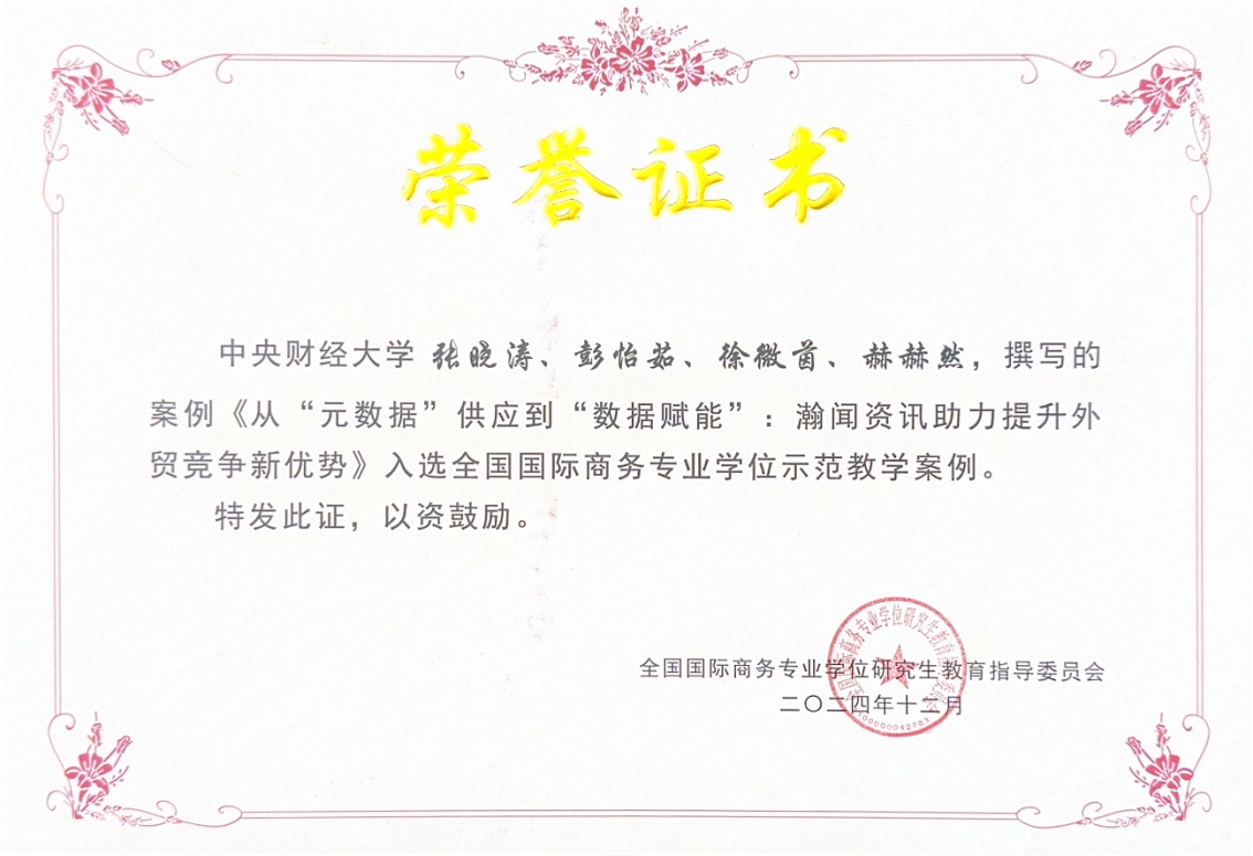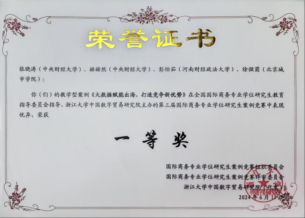 张晓涛教授作为首席专家的案例项目《专精特新“小巨人”大作为,瀚闻资讯大数据赋能走出去》获得教育部学位中心主题案例项目立项。张晓涛教授、国际商务专业研究生赫赫然等撰写的案例《数字化IP保护——画版的国际化之路》和沈琪副教授、国际商务专业本科生张君哲撰写的案例《新时代公司国际化的绿色产业链》2项教学案例被收录至中国专业学位案例中心全国国际商务专业学位案例库。张晓涛教授、国际商务专业研究生彭怡茹、赫赫然等撰写的案例《从“元数据”供应到“数据赋能”:瀚闻资讯助力提升外贸竞争新优势》和公司教师蒙双、张晓涛、霍达、蒋海威、国际商务专业研究生刘立世、李庆娜、周洛羽撰写的案例《沙漠与蓝海同在:赤子城科技的中东征途》2项教学案例入选全国国际商务专业学位示范教学案例。段玉婉教授作为首席专家的案例项目《中国新能源汽车产业企业出海模式探索——以上汽集团、比亚迪、宁德时代为例》(推荐上报中国专业学位案例中心)、蒙双副教授作为首席专家的案例项目《全球互联的数字桥梁:互联网科技企业全球化生态构建之路》获2024年M88官方网站主题案例征集项目立项。蒙双副教授撰写的《“沙漠”变“绿洲”:赤子城科技的中东出海征途》案例获评2024年M88官方网站研究生课程思政优秀案例。