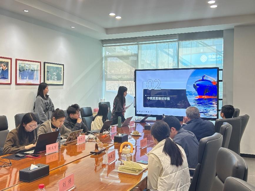 第三小组朱佳钰、刘博进行了题为《全球变局中中俄贸易的现状审视、机遇探寻与前景展望》的汇报。她们从中俄贸易规模与结构、贸易总额变化出发,详细分析了中俄贸易现状,并着重介绍了中俄在家具产业链中潜在的合作与互补关系。最后,她们总结了中俄贸易面临的机遇与风险,并从不同层面提出应对措施。