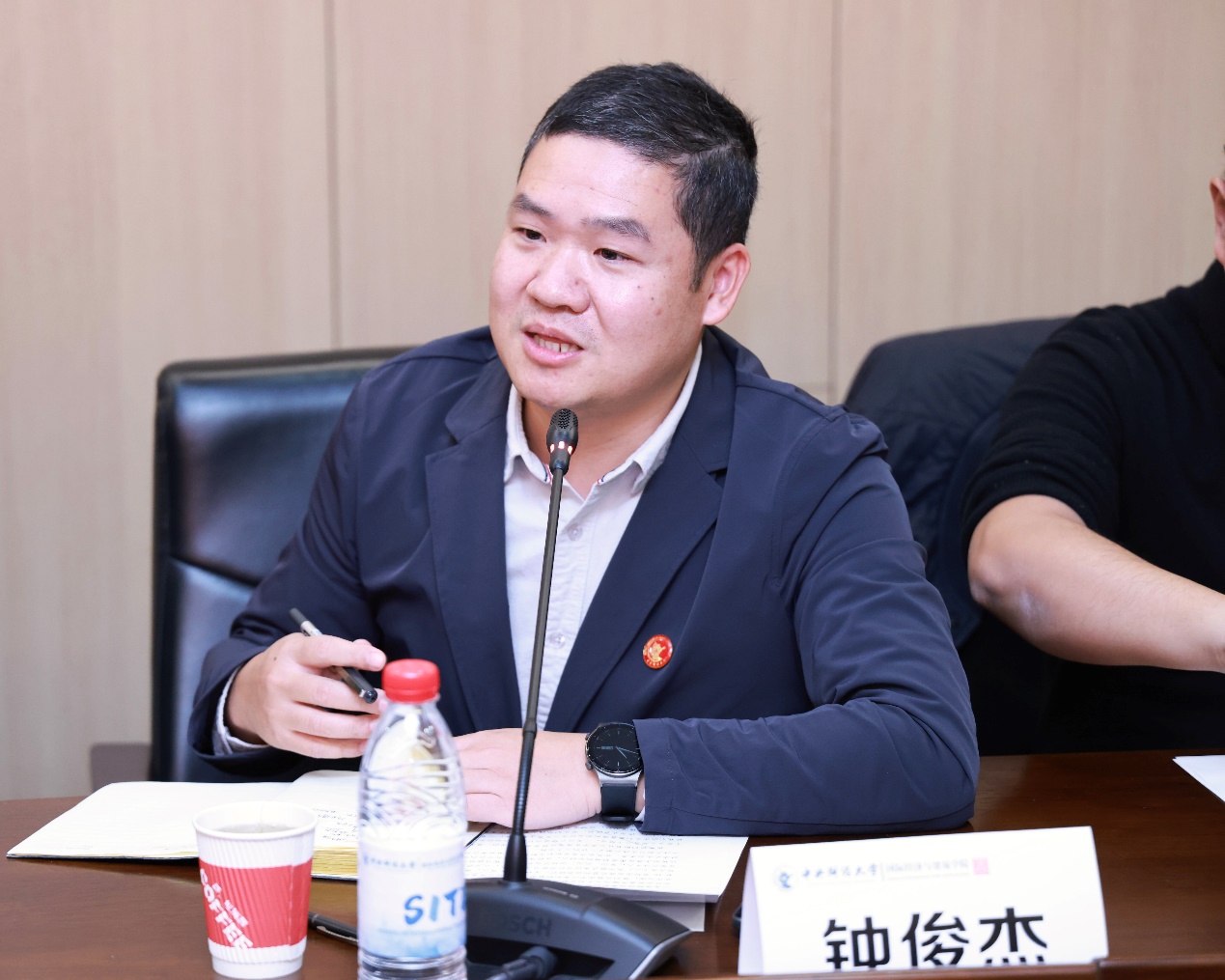 公司博士生代表葛俊良从自身学习与科研实践的经历出发,谈到将理论研究与社会实践相结合的必要性。他表示,博士研究生在深耕学术领域的同时,也应积极参与实践活动,以更好地服务社会需求。他感谢公司和公司为员工搭建的多样化实践平台,并对江苏银行提供的机会表示期待。
