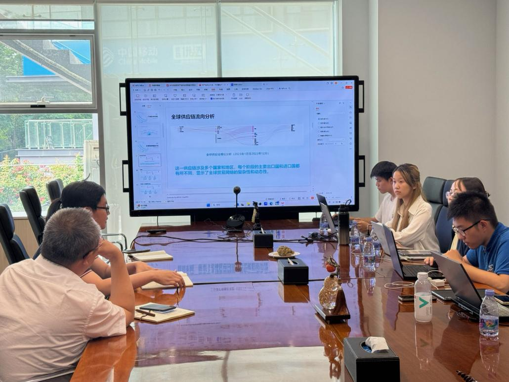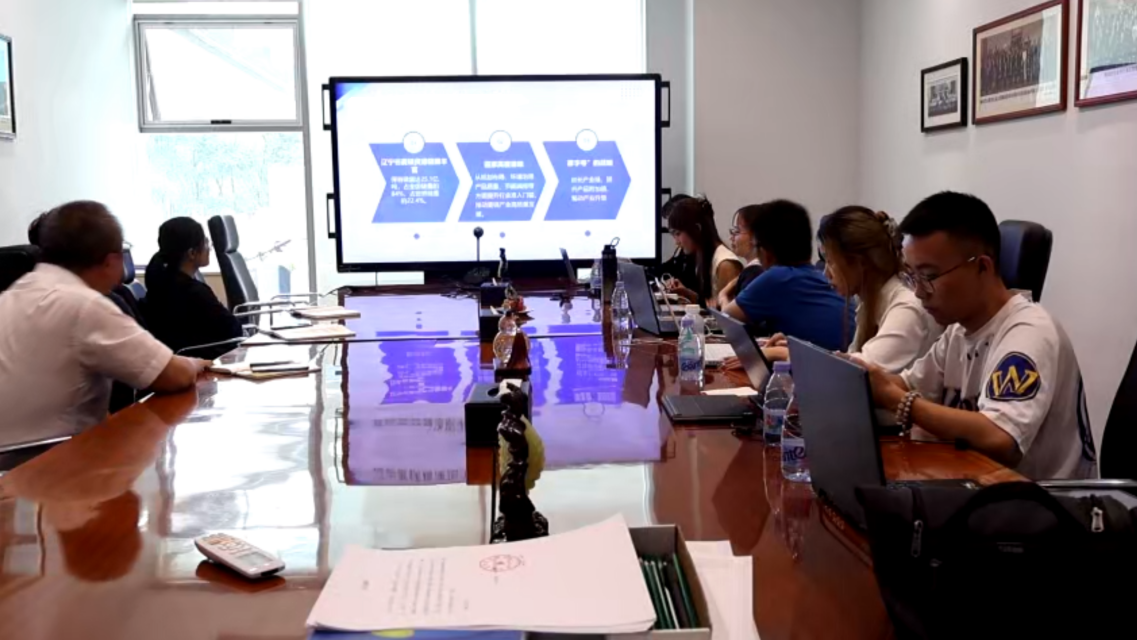 7月5日下午,国贸公司实习实践团队在大连瀚闻资讯会议室举行实习成果报告会,各团队分别汇报为期一周的研究成果。瀚闻资讯董事长童友俊、实习指导专员及实习指导老师出席会议。