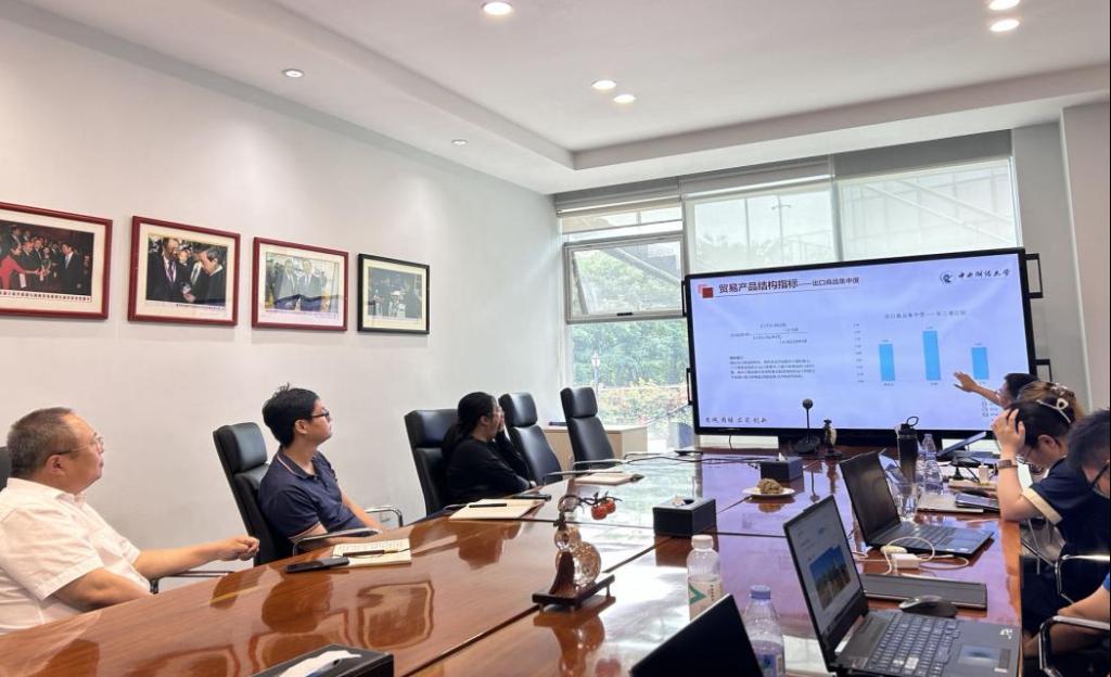 团队成员彭怡茹围绕《专精特新企业瀚闻资讯赋能企业“走出去”的教学案例开发》进行汇报。她从瀚闻资讯作为专精特新企业以数据库为外贸赋能增效作为切入点,并结合与瀚闻资讯董事长童友俊,瀚闻资讯研究员、GTI工程师、项目经理的访谈报告,提出教学案例开发的必要性与重大意义,以瀚闻资讯与大型企业、政府部门、商会、中小企业合作的内容与成效为切入点深入剖析了案例分析的逻辑路径。