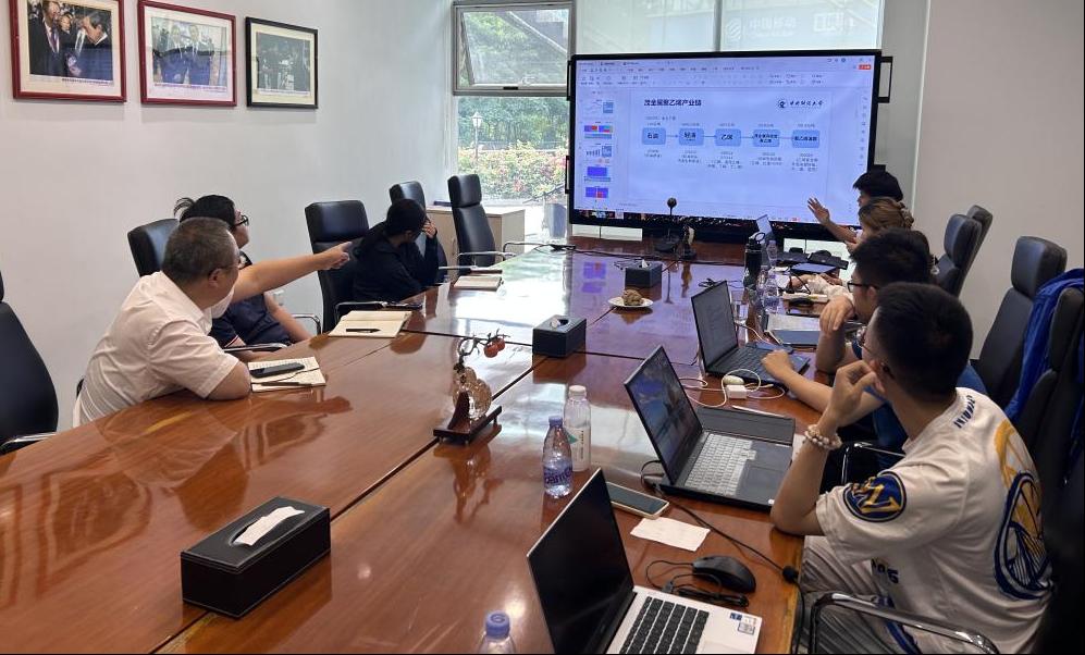 第三小组黄启荣进行了题为《茂金属聚乙烯产业链分析》的汇报。他从产业链研究价值作为切入点,基于石化行业作为我国的支柱产业是我国重点发展的高新技术产业之一,对原油、轻油、乙烯、高密度聚乙烯及聚乙烯薄膜各阶段展开具体研究,并得出产业链原料石油高度依赖国际贸易、我国乙烯产业成本在世界市场失去优势、我国在高密度聚乙烯生产上存在技术差距、聚乙烯薄膜产业趋向成熟,加强对产品多样性的探索的结论。