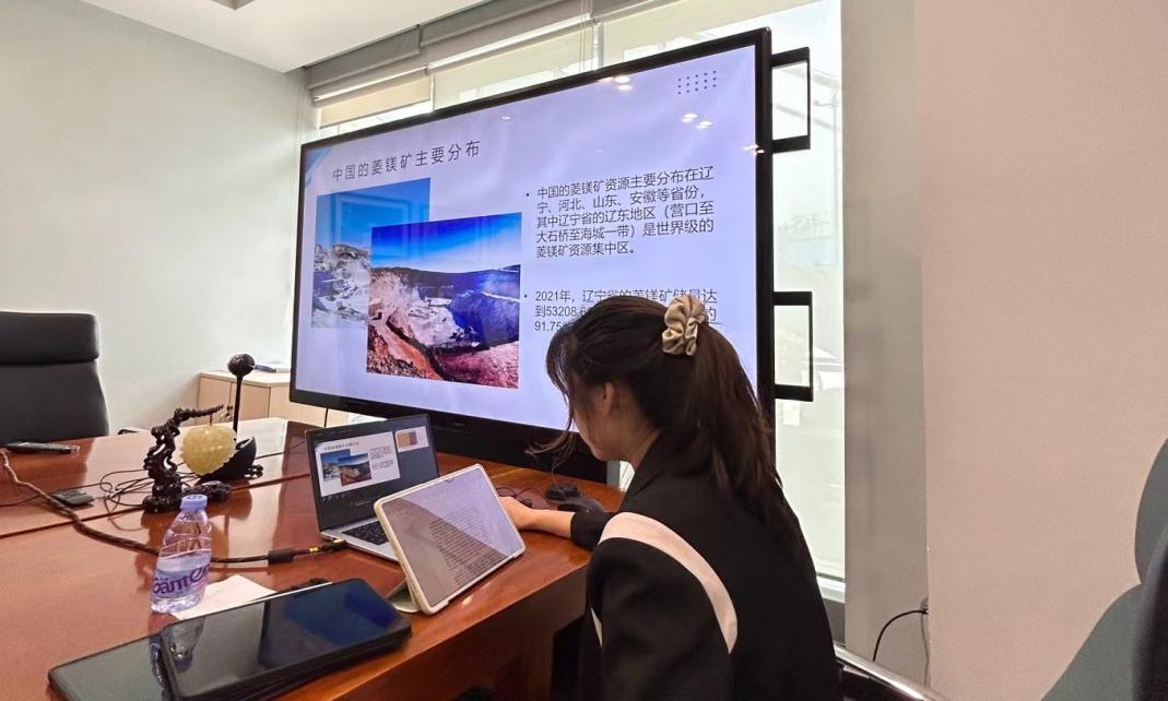 第二小组王彩蝶进行了题为《菱镁精深加工-镁质耐火砖产业链分析》的汇报。她从介绍产业链、阐述菱镁精深加工产业必要性及分析产业链三个方面作为重点,探究菱镁精深加工-镁质耐火砖产业链面临的机会与挑战。具体而言,辽宁省与广东省在菱镁矿出口上的并驾齐驱,正是出口港口与国际市场需求精准匹配、高效协同的生动例证,展现了全球化背景下国际贸易网络的复杂性与灵活性,也揭示了在全球供应链中,地理区位与物流网络的优化对于提升贸易效率与竞争力的关键作用。
