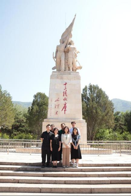 公司一行抵达十三陵水库纪念碑和展览馆,纪念碑主体为大理石镶砌,方形柱状,顶微内收,碑的上半部四个立面分别镌刻毛泽东、刘少奇、周恩来、朱德四位党和国家领导人于1958年5月25日来水库劳动时给水库的题词。“十三陵水库”,“劳动万岁”,“鼓足干劲,力争上游,多快好省的建设社会主义”,“移山造海,众志成城”四句伟人题词苍劲醒目。