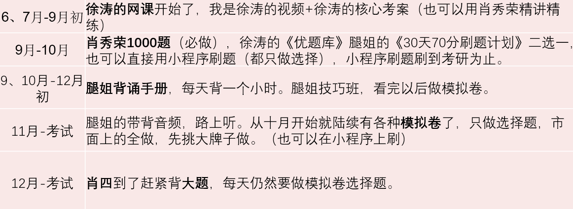3.大题:肖四必背,如果11月份以后其他科目复习的都不错,肖八、徐涛老师和陆寓丰老师都可以背,其实内容差不多,热点就那些。没时间就只背肖四大题。