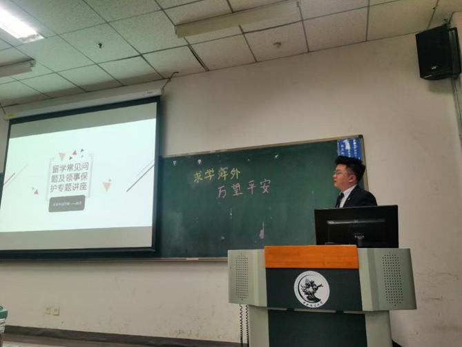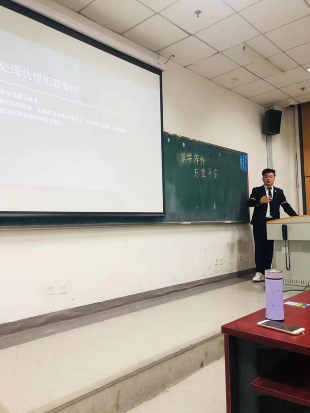 随后,赵虎老师以“万望平安”为主题,阐述了海外职工需注意的安全事项。赵老师根据留学期间所见所闻,列举了海外易发犯罪案例,指出了相应的解决方法。赵老师又根据国际环境以及时事热点,对“后疫情时代”留学需注意的事项进行了深入分析。