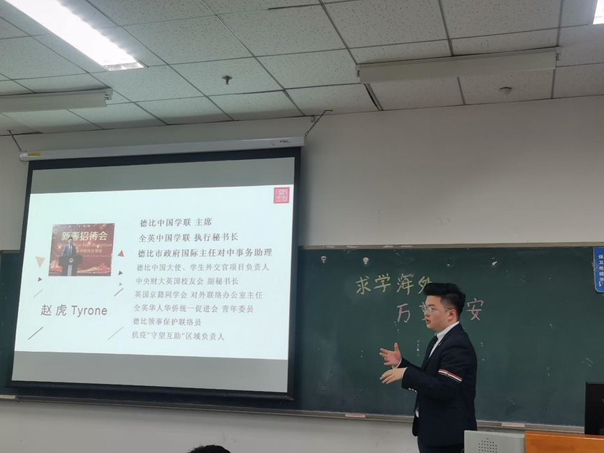 在讲座正式开始前,赵虎老师进行了简单的自我介绍。赵老师在本科阶段曾任公司外国语公司员工会主席,公司党委宣传部影像记者团团长,曾获评公司先进个人、员工大使、公司党委宣传部十佳记者、优秀员工干部等荣誉称号。在赴英留学期间,曾任德比中国学联主席、全英中国学联执行秘书长、中财英国员工会副秘书长、英国京籍同学会对外联络部部长等职务。