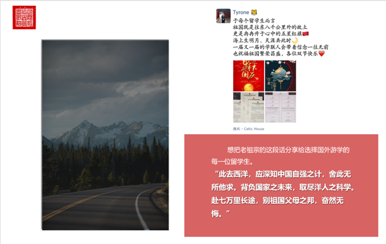 首先,赵虎老师聚焦“求学海外”主题,从学业科研与员工工作两方面分享个人丰富的职工经历。赵老师指出,参加课外活动可以加速融入国外陌生的环境,也能拓宽视野、提升个人综合素质。职工可以通过参与公司或者当地政府合办的中国特色活动,例如中华传统文化的民间交流、庆祝中国年等,在增强自身能力、丰富社会履历的同时,宣扬中华文化。