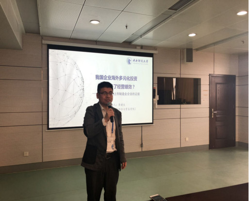 图:李建生博士作题为“我国企业海外多元化投资是否提升了经营绩效?”的学术演讲