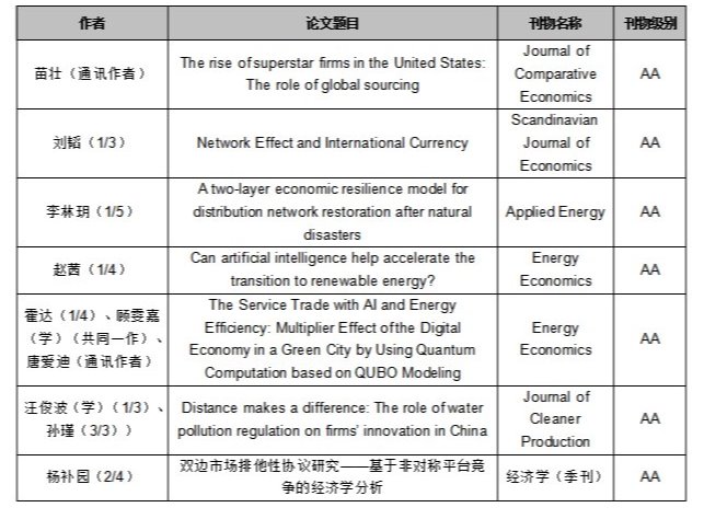 2024年,公司在学术发表方面稳步发展,公司教师共出版《中国低端制造业对外直接投资研究:可行性分析与区位选择》、《数据要素、数据隐私保护与经济增长》、《金融一体化背景下的经济周期跨国传导》、《Application of psychology to economics and teaching》、《Environmental psychology in applied economics》中英文学术专著5部。累计发表各类学术论文78篇,其中在Journal of Comparative Economics、Scandinavian Journal of Economics、Applied Energy、Energy Economics、Journal of Cleaner Production、《经济学(季刊)》等中英文AA类期刊发表论文7篇,在A类期刊发表论文46篇;共计发表SSCI论文34篇,SCI论文10篇,CSSCI论文18篇。4项成果获得第二十三届安子介国际贸易研究奖;另有3篇论文分别获得第七届洪银兴经济学奖(青年)、第十四届服务贸易研究奖、the 47th EBES Conference-Berlin最佳论文奖等国内外奖项。